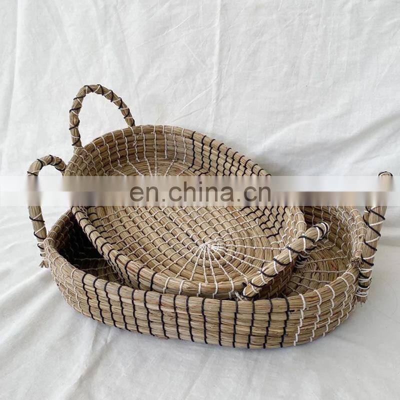 Durable For Daily Seagrass Serving Tray Fruit Basket For Picnic Trip Vietnam Supplier