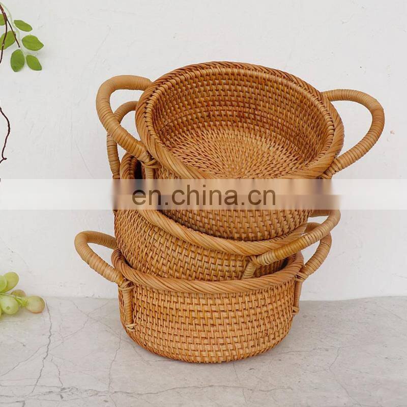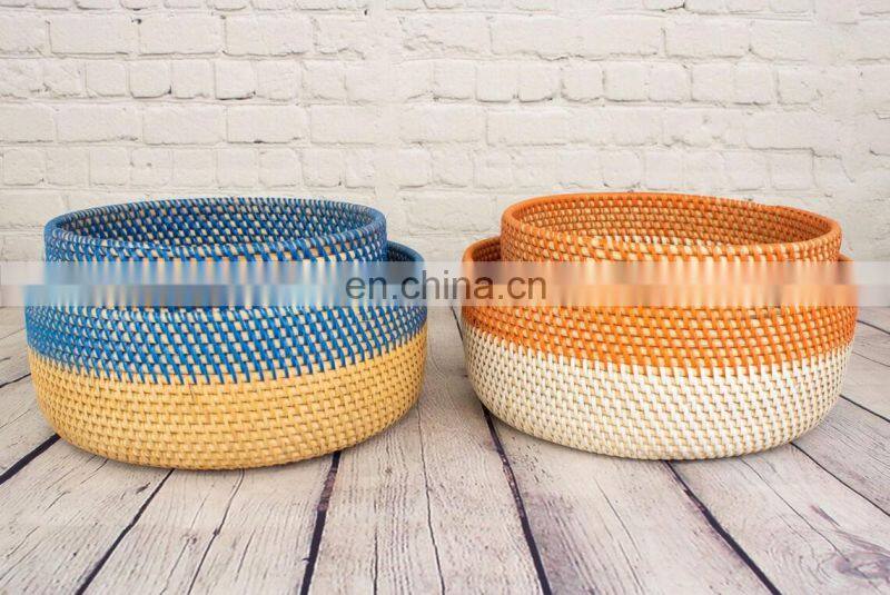 Rattan Storage Basket Tray in Blue & Orange Boho Home Decor