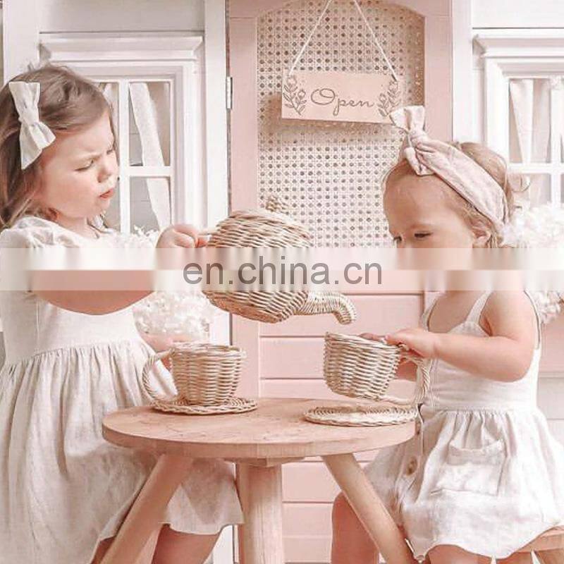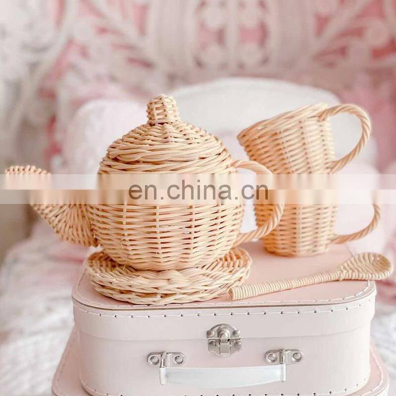 Rattan Tea Set Kid Doll Toy Tea Cups & Sets
