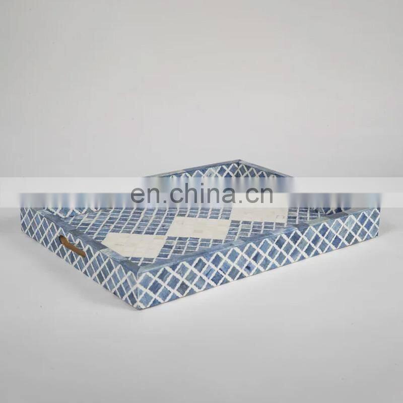 Blue Lacquered Serving Tray Wholesale Cheapest Hand Finishing Mother Of Pearl Tray