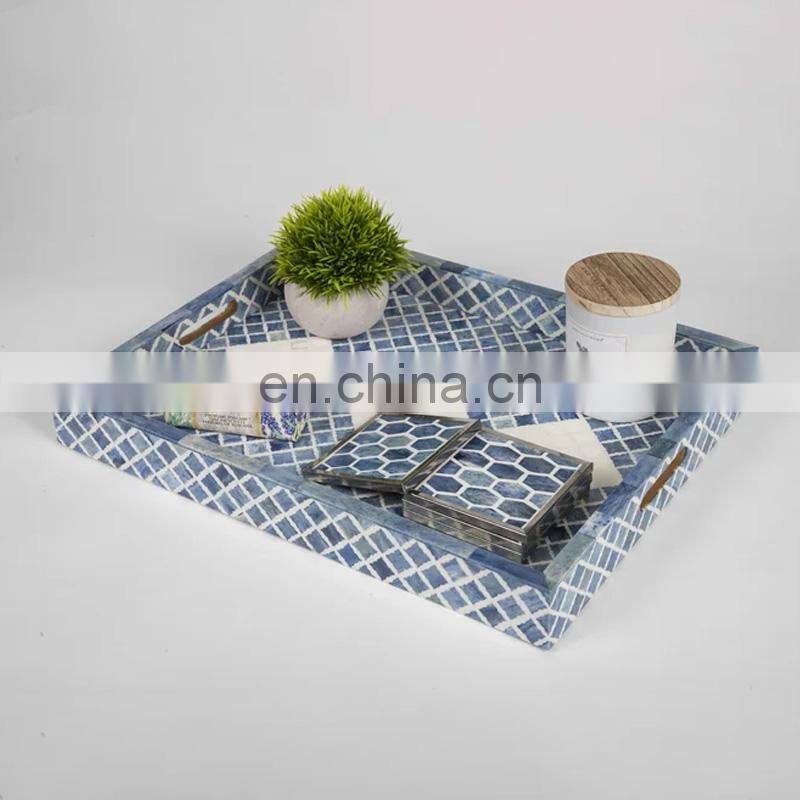 Home > Products > Home & Kitchen Accessories > Blue Lacquered Serving Tray Wholesale Cheapest Hand Finishing Mother Of Pearl Tray