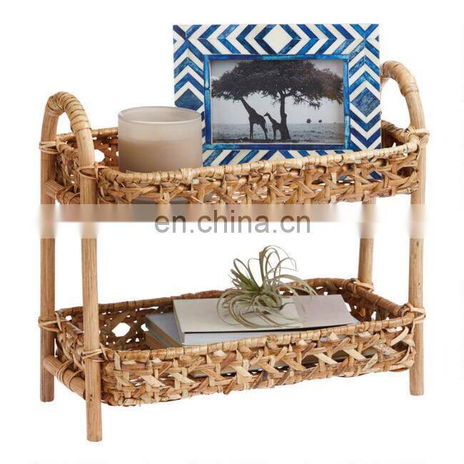 Best Seller Natural Rattan 2 Tier Storage Shelf Basket Floor Rack