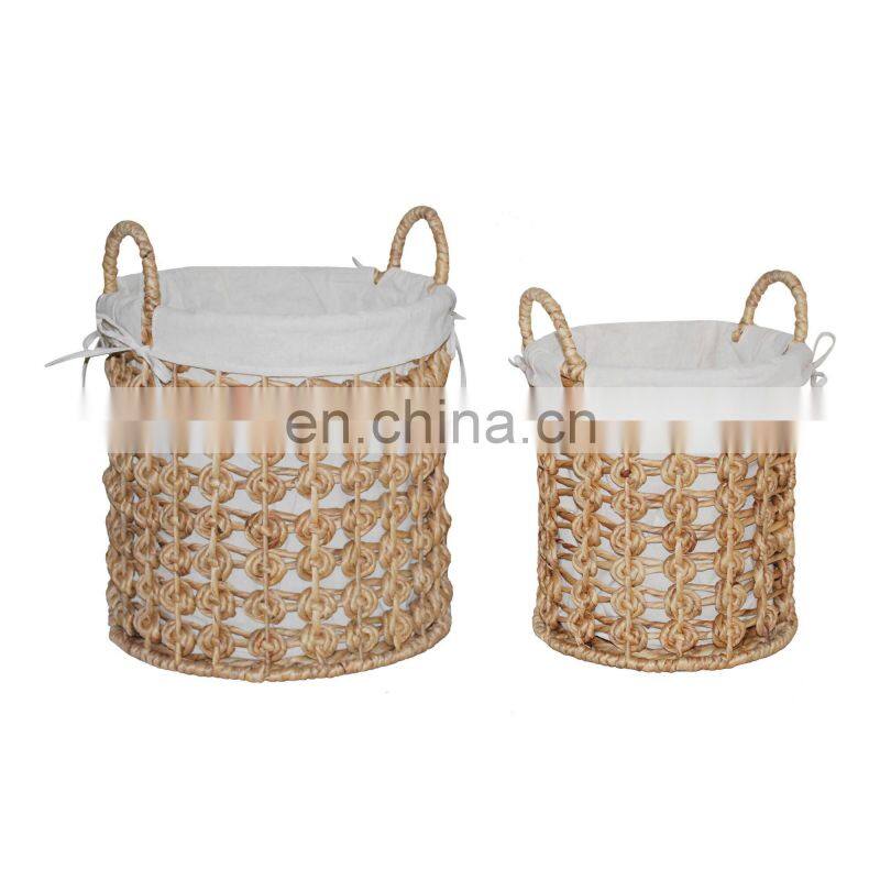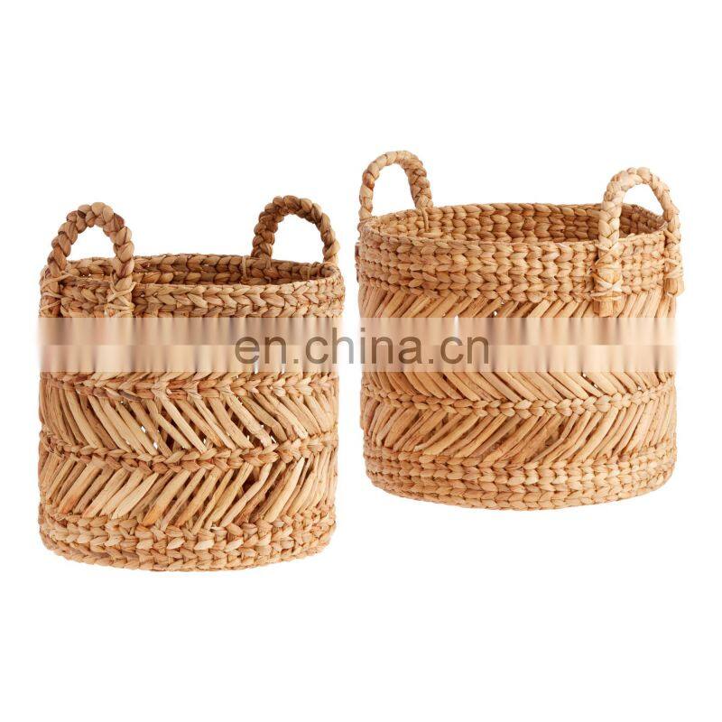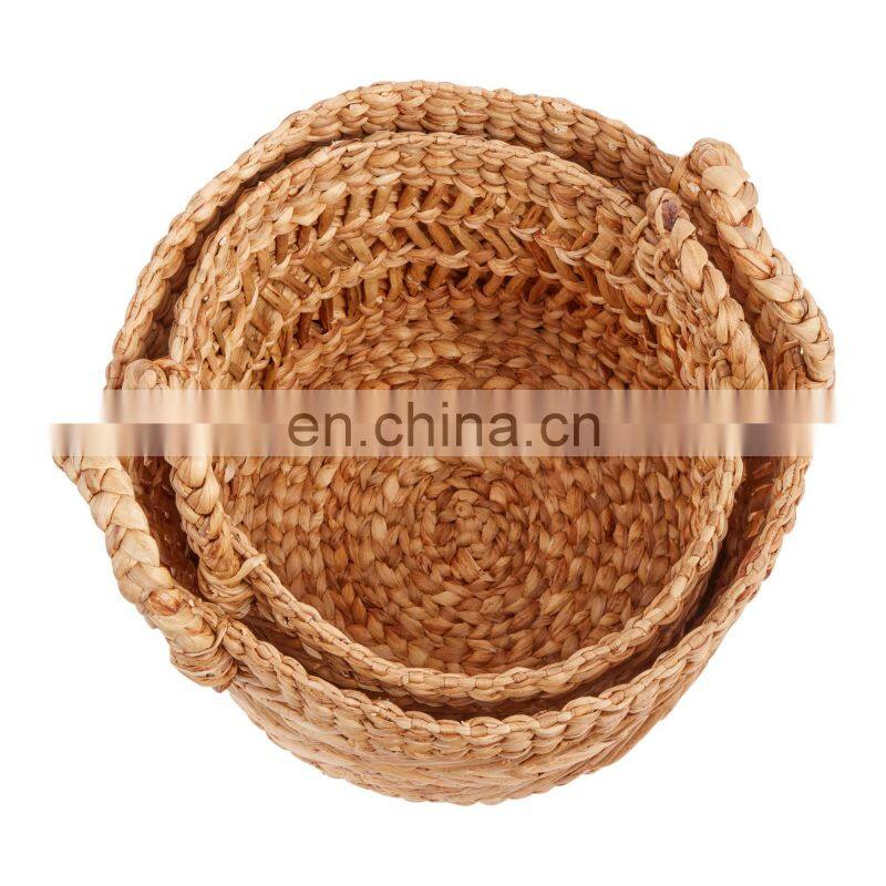 Handwoven of Water Hyacinth Storage Basket Set of 3 Rustic Straw Basket