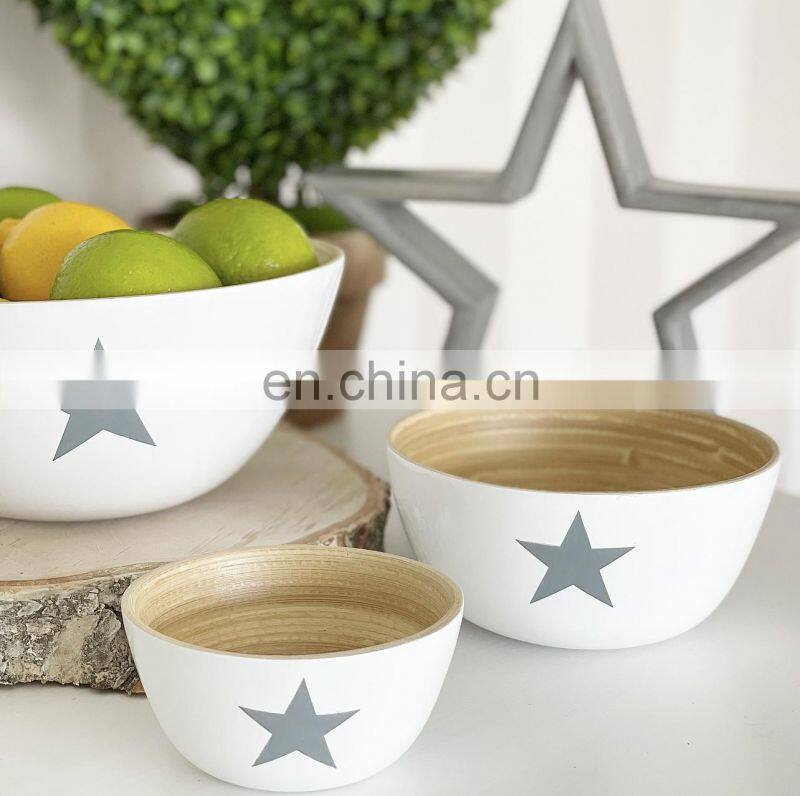 Eco Friendly Set of 3 Hand Painted Natural Bamboo Bowl Cheap Wholesale Handmade Serving Bowls Vietnam Supplier