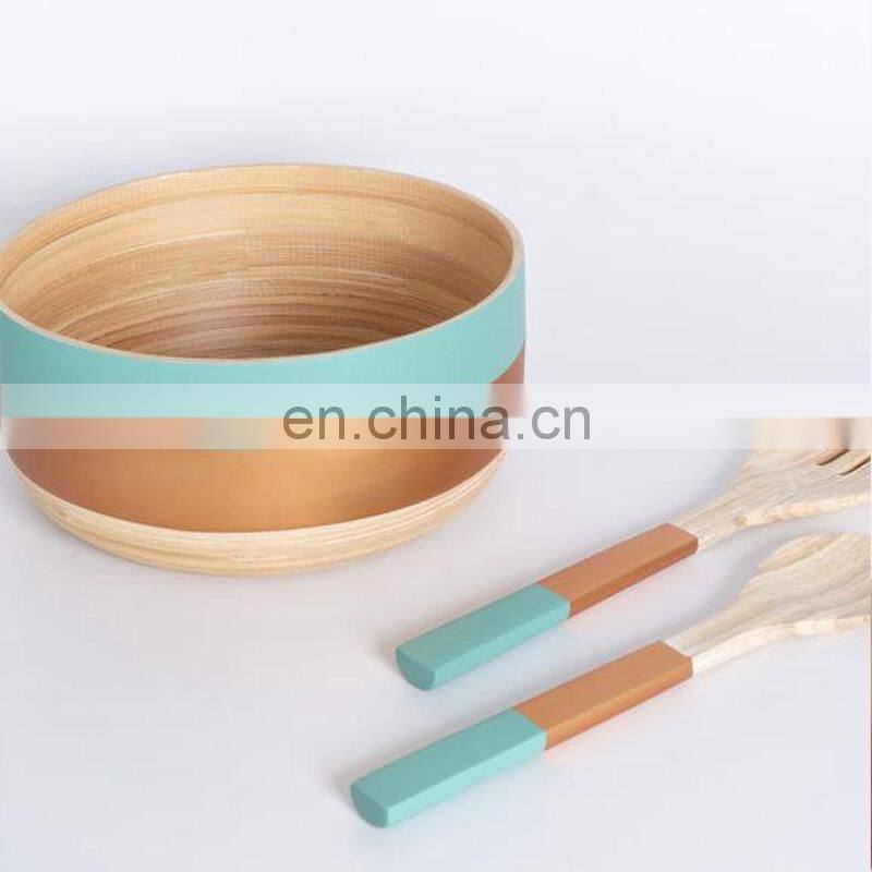 Cheap Wholesale Set Spun Bamboo Salad Bowl Large and Utensils Vietnam Manufacturer