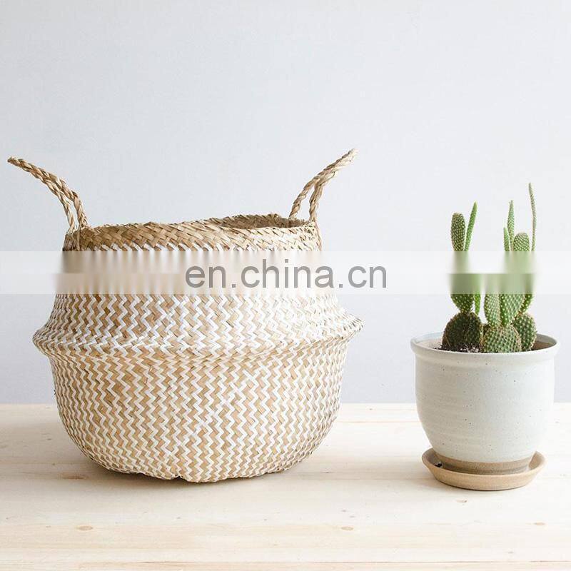 Hot Sale CHeap Zigzag Seagrass Belly Basket Best Seller Plant Holder Storage Basket Decor Home Wholesale