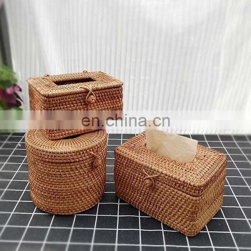 Hot Sale Multi Size Rattan Woven Tissue Box, Wicker Tissue Storage Basket Holder Storage Basket Vietnam Manufacturer