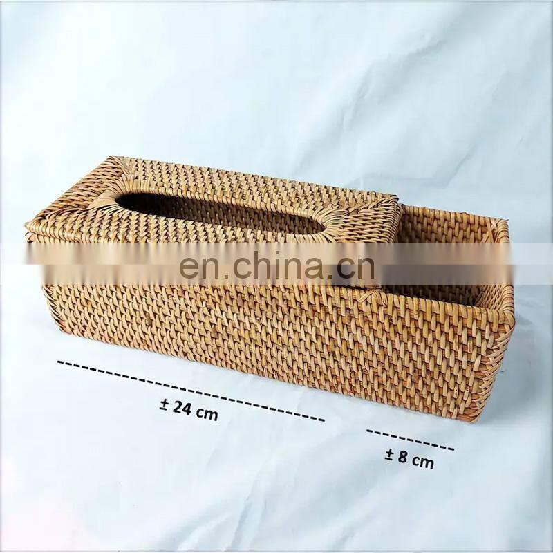 - Hot Sale Vintage Rattan Tissue Box Rustic Core Tissue Holder With Hinged Top Lid Vietnam Manufacturer