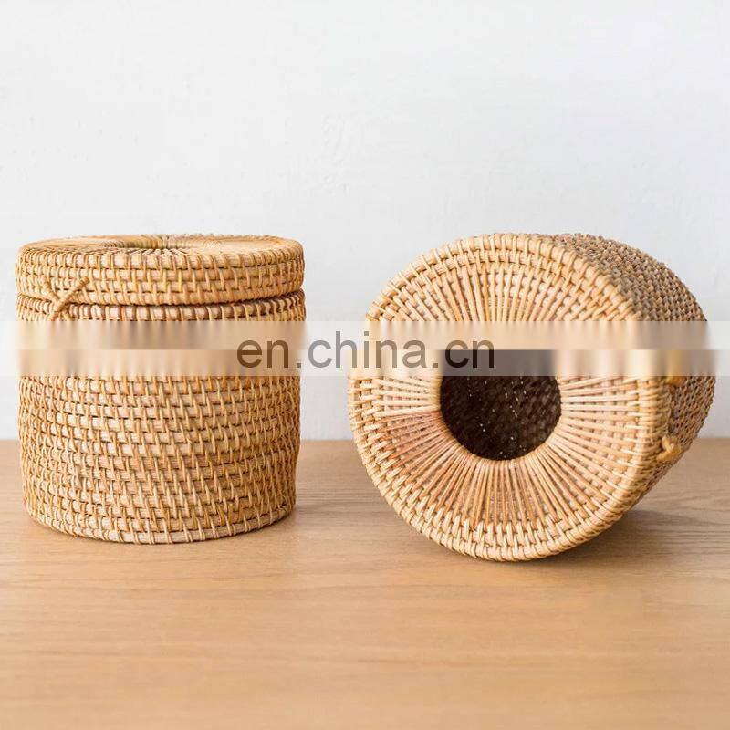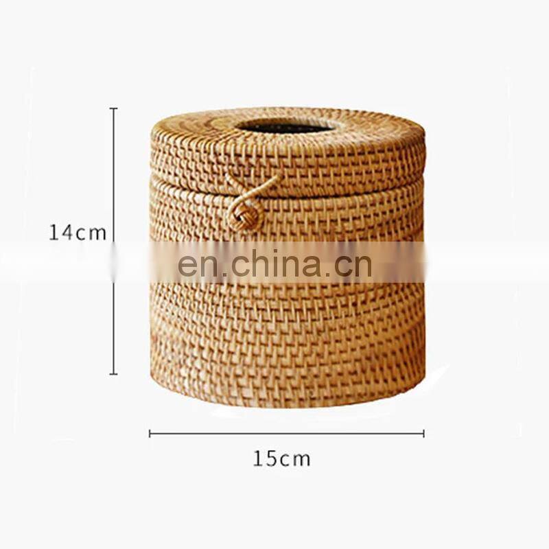 Home > Products > Home & Kitchen Accessories > Hot Sale Rattan Round Tissue Box Tissue Roll Holders With Lid for Storage Single Roll Vietnam Supplier