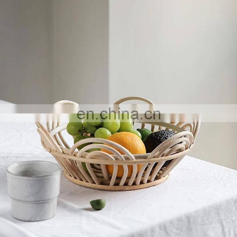 Hot Sale Hand-made Lotus-shaped Rattan Fruit Basket, Handcrafted Fruit Bread Nuts Candies Storage Box Basket