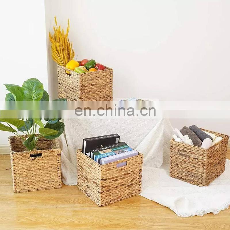 Handwoven Water Hyacinth Shelf Basket Can Be Folded Foldable Storage Wicker Basket Vietnam Supplier
