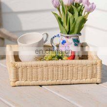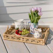 Hot Sale Rectangle Woven Rattan Tray, Best Price Straw Serving Tray, Decorative Boho Tray for Table Decor