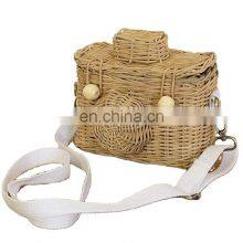 Hot Sale Cute FHandwoven Rattan Camera Look Bag, Handicraft Kid Toys Wicker Kids Bag Wholesale Supplier