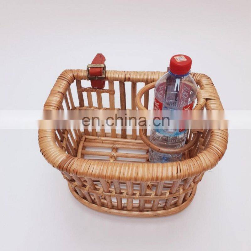 Hot Sale Handcrafted Rattan front bicycle basket Wicker bike basket with cup holder Cheap Wholesale made in Vietnam