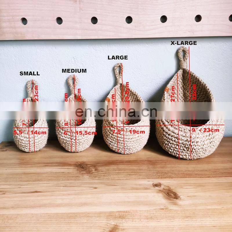 Hot Sale Jute Crochet Hanging Wall Rustic Baskets Set, Vegetable baskets Vietnam Supplier Cheap Wholesale