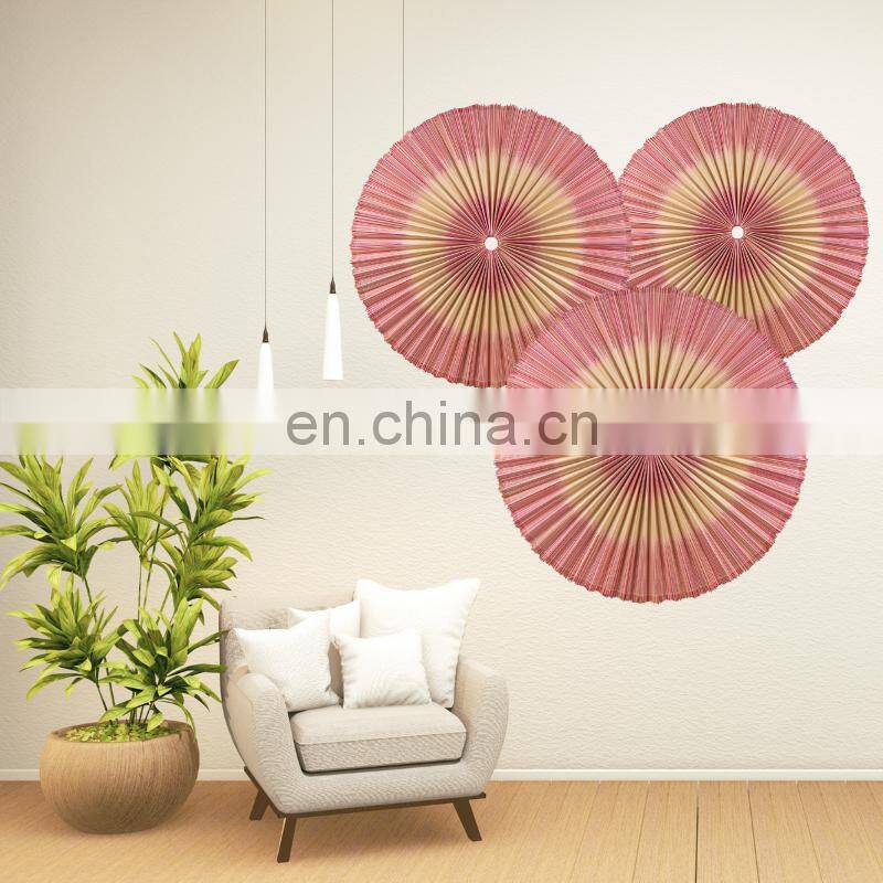 Hot Sale Woven Bamboo Hanging Wall Basket With Leather Handle Wall Decoration Fruit Basket Wholesale Made in Vietnam
