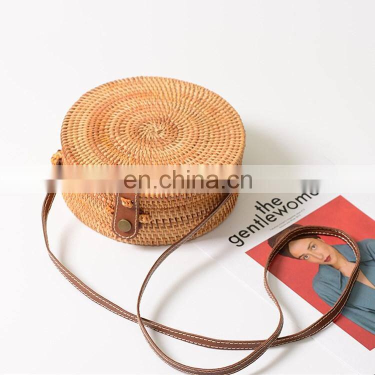 Hot Product Woven Rattan Storage Basket With Wooden Plate Serving Tray With Leather Handle for Table Wholesale