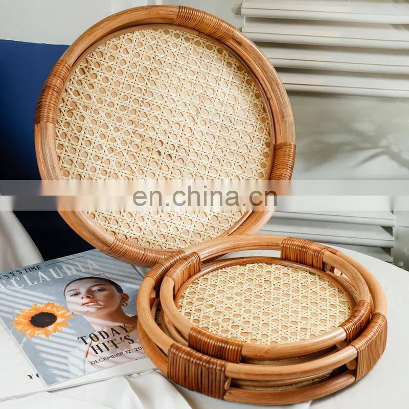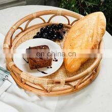 Hand weave Rattan tray round coffee table Serving Tray for Table Handwoven Basket for Breakfast Wholesale