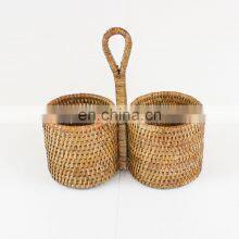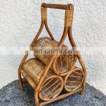 Hot Woven Decorative Vintage Rattan Natural Rattan Wine Caddy Basket High Quality Bottle Holder Wholesale Vietnam Supplier