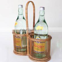 Hot Sale Decorative Vintage Rattan & Wicker Wine Rack Bottle Holder With Handle Wholesale Vietnam Supplier