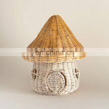 Hot Sale 2-Tone Rattan Mushroom House, Rattan Cute Doll House Storage Basket Kids Toys Wholesale Supplier