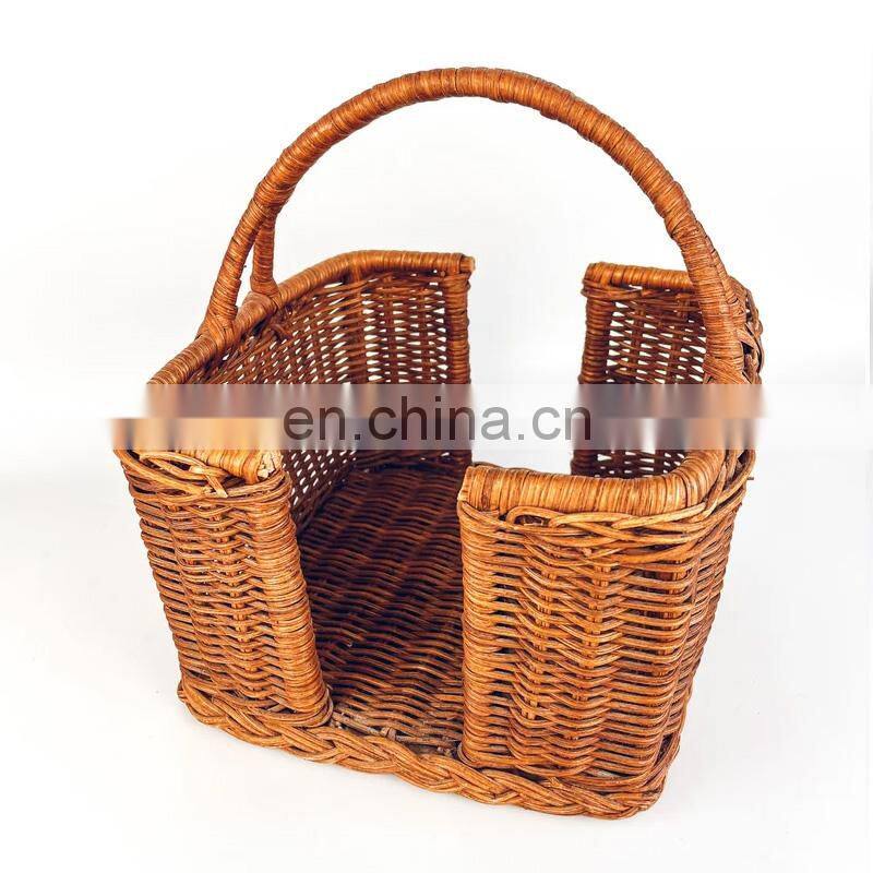 Hot Sale Vintage Wicker Picnic Utensil Napkin Holder Basket With Handle Chic Cottage Bottle Holder Wholesale Vietnam Supplier