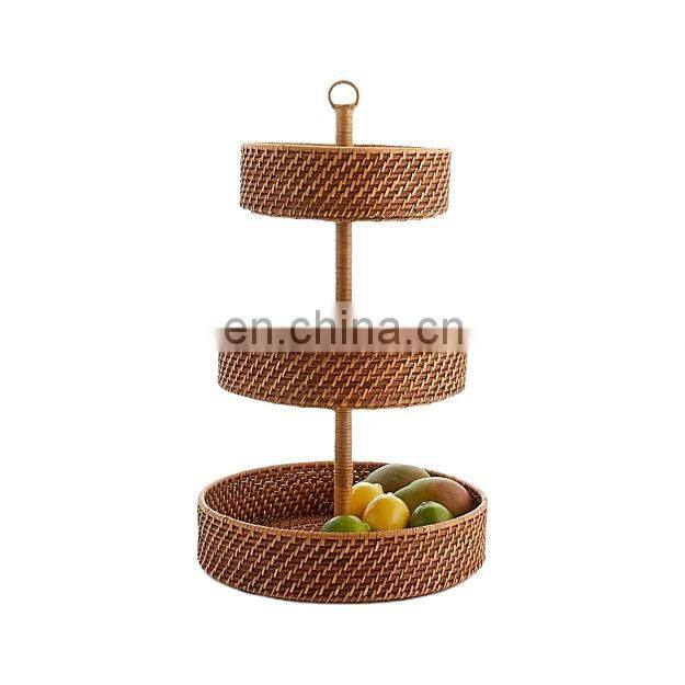 Hot Sale Rattan Tiered Cake Stand Round Tray With Leg for Table Handwoven Basket for Breakfast Wholesale