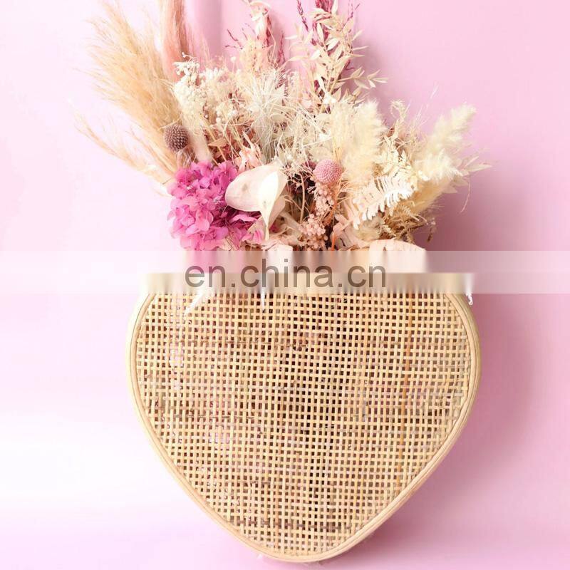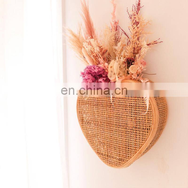 Heart Shape Rattan Wall Basket, Boho Nursery Decor Hand woven vintage Wall Hanger childs bedroom space Vietnam Supplier