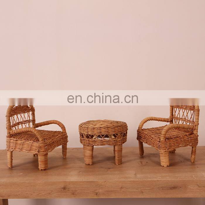 - Hot Sale Wicker Vintage Chair Rattan Chair Table for Doll Retro Boho Child Toy Vietnam Manufacturer Cheap Wholesale