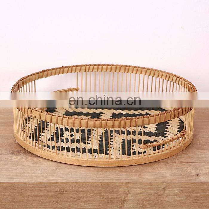 Hot Sale Handwoven Bamboo Serving Tray Basket High Quality Coffee Tray For Fruit Basket Wholesale Multifunction