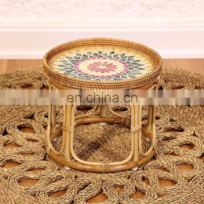 Flower Shaped Rattan Coffee Table Vintage Wicker Side Table Decor Home Vietnam Manufacturer Cheap Wholesale