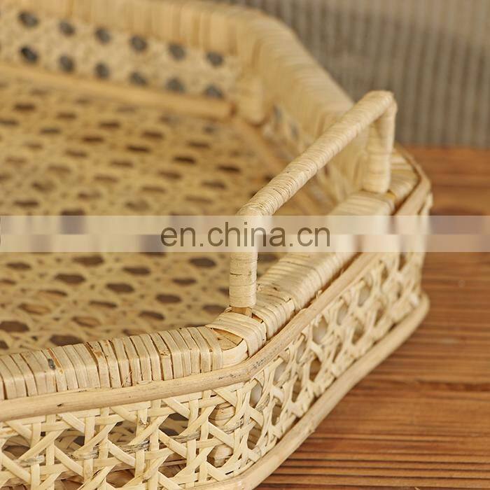 Hot Sale White Hexagon Rattan tray Coffee table Serving Tray for Table Handwoven Basket for Breakfast Wholesale