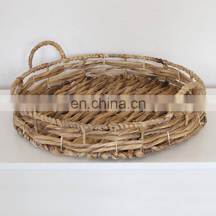 Straw Round Water Hyacinth Woven Tray with Handle And Metal Frame Cheap WHolesale Made in Vietnam