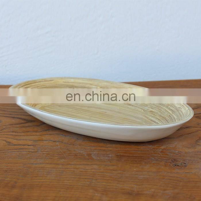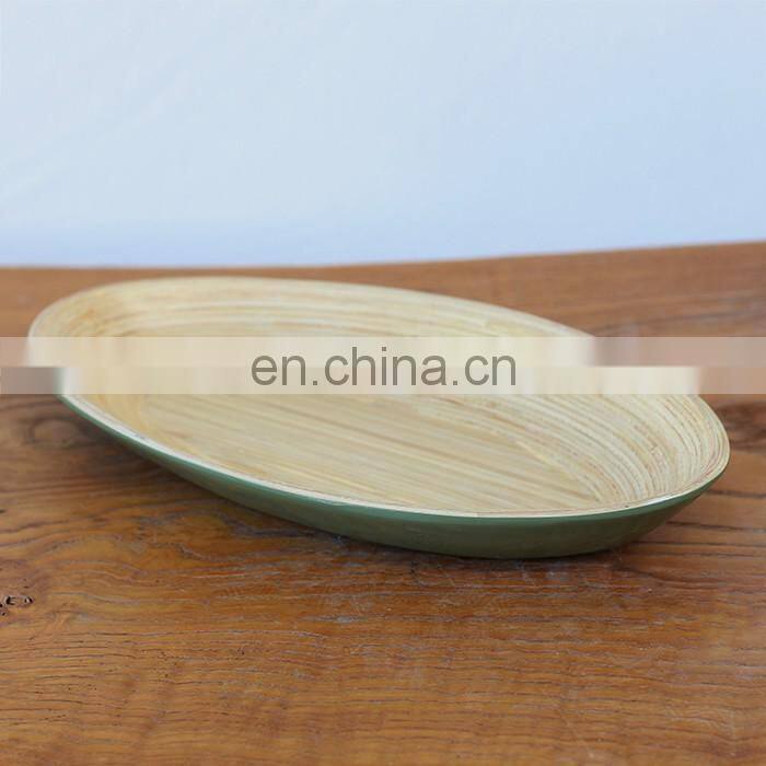 Hot Sale Leaf Shaped Spun Bamboo Plate, Handmade Serving Tray With Custom Lacquer Outside Wholesale
