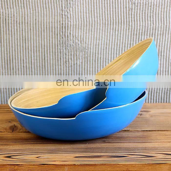 Natural Round Set of 3 Natural Spun Bamboo Salad Bowl, Handmade Serving Bowls With Lacquer Outside Wholesale