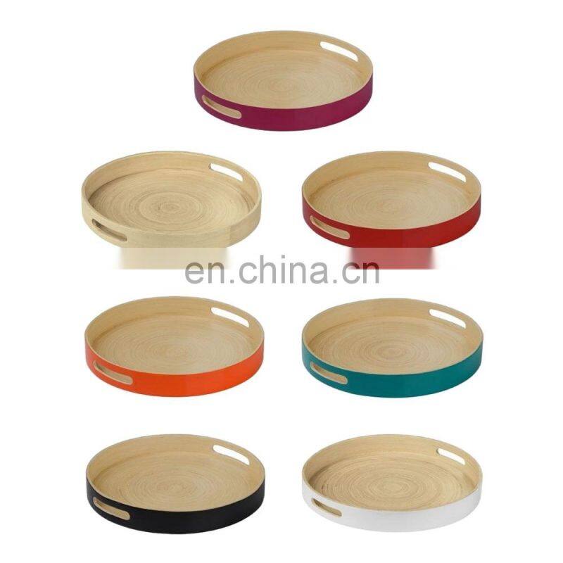 Home > Products > Home & Kitchen Accessories > Hot Sale Leaf Shaped Spun Bamboo Plate, Handmade Serving Tray With Custom Lacquer Outside Wholesale