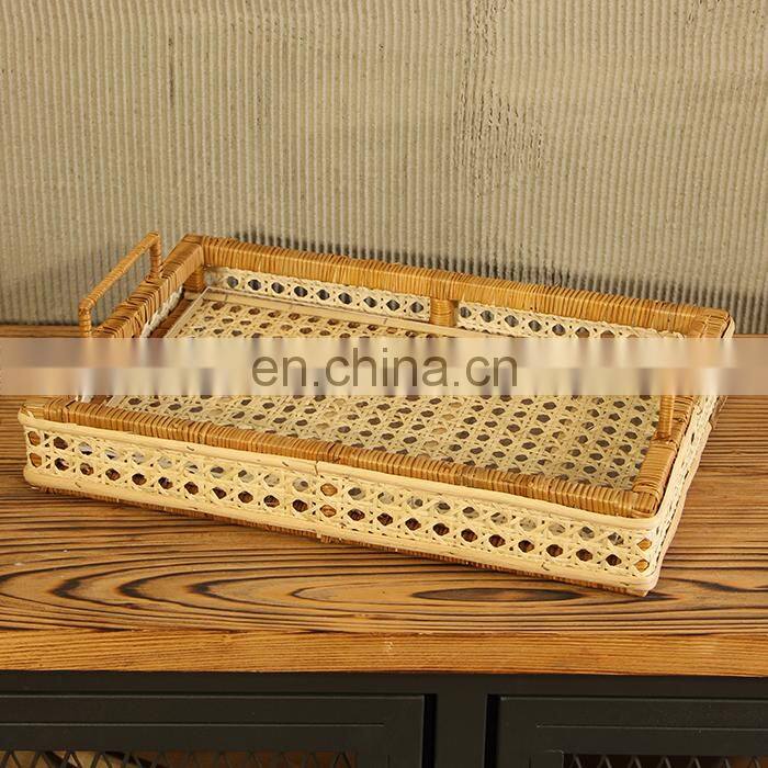 The rattan tray, which is suitable for decorative purposes, is suitable for use as a tea tray, a serving tray such as a coffee tray, a presentation tray such as a ring tray, and a decorative candle tray.