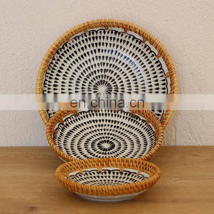 Unique Vietnam Best Price Rattan Ceramic Fruit Plate Bread Tray Basket Japanese Living Room Household Snack Tray Wholesale