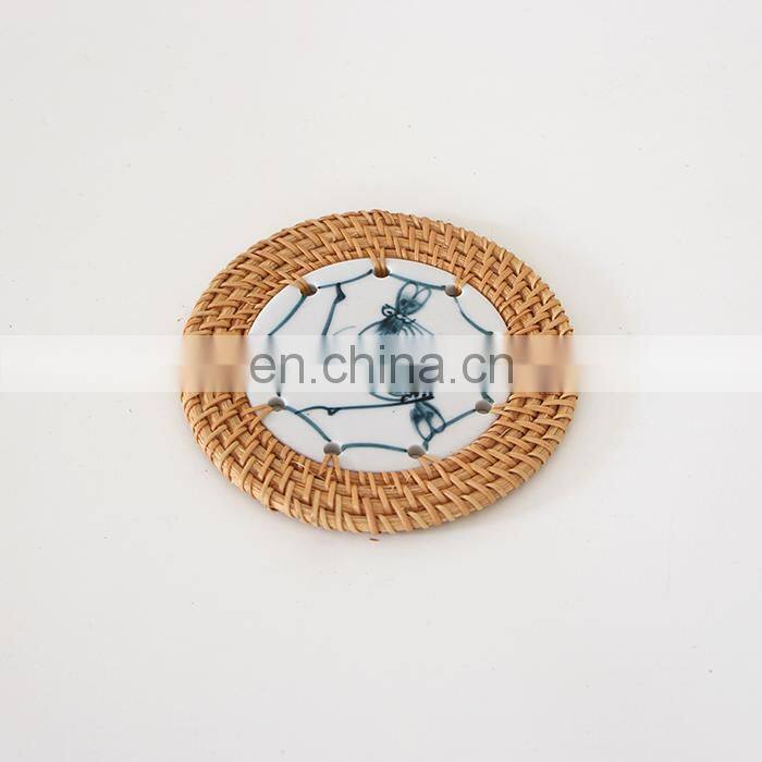 Best Price Set Of 3 Round Rattan tray With Ceramic New Arrival Serving Tray for Table Handwoven Basket Cheap Wholesale