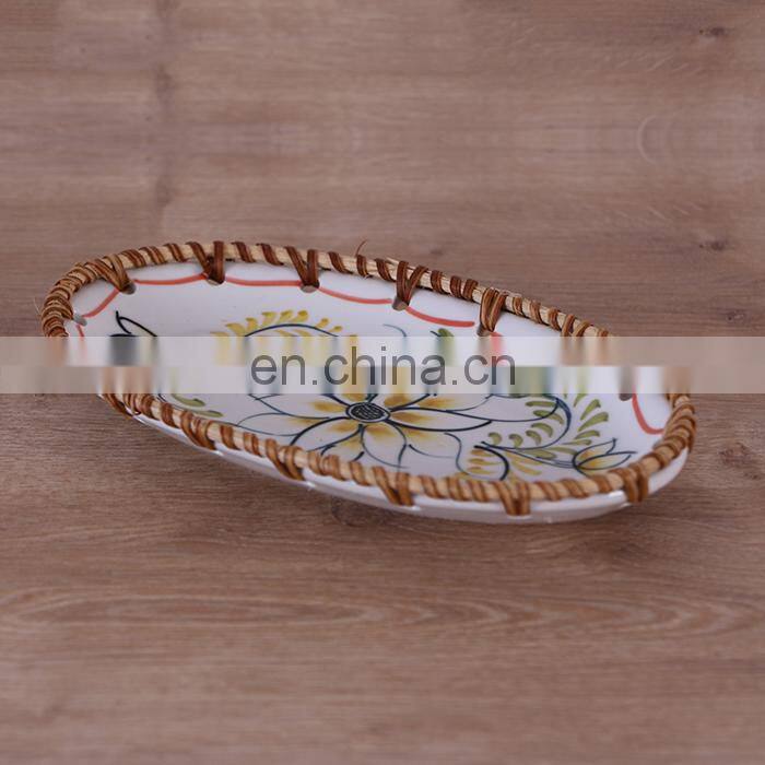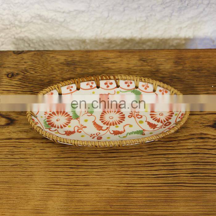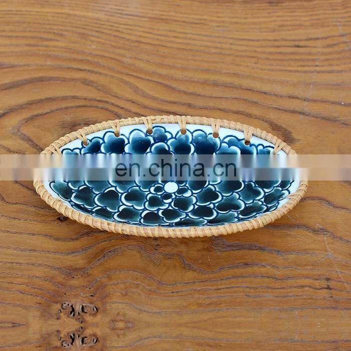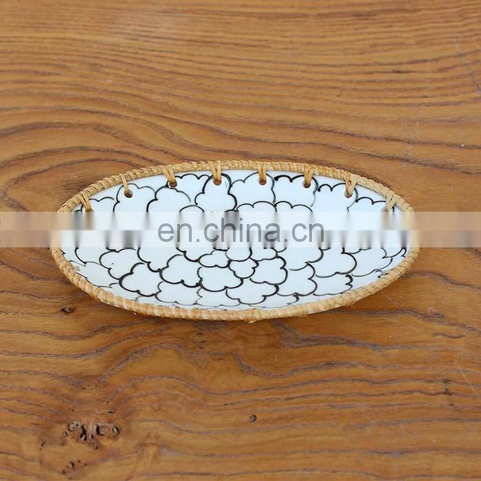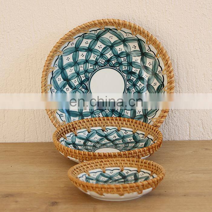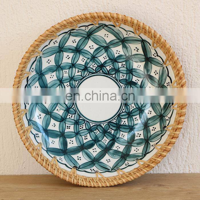 Unique Vietnam Best Price Rattan Ceramic Fruit Plate Bread Tray Basket Japanese Living Room Household Snack Tray Wholesale