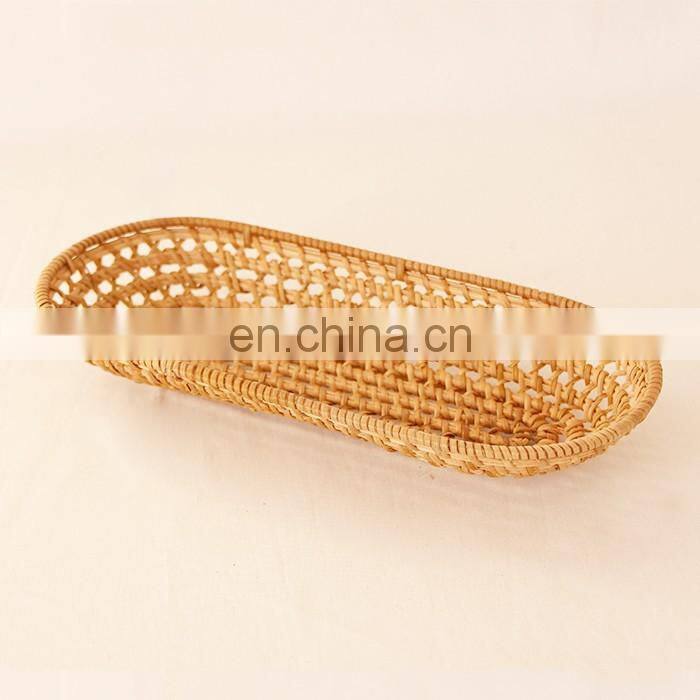 Hot Sale Natural rattan bread tray fruit plate bread tray basket Rustic living room household snack tray Wholesale