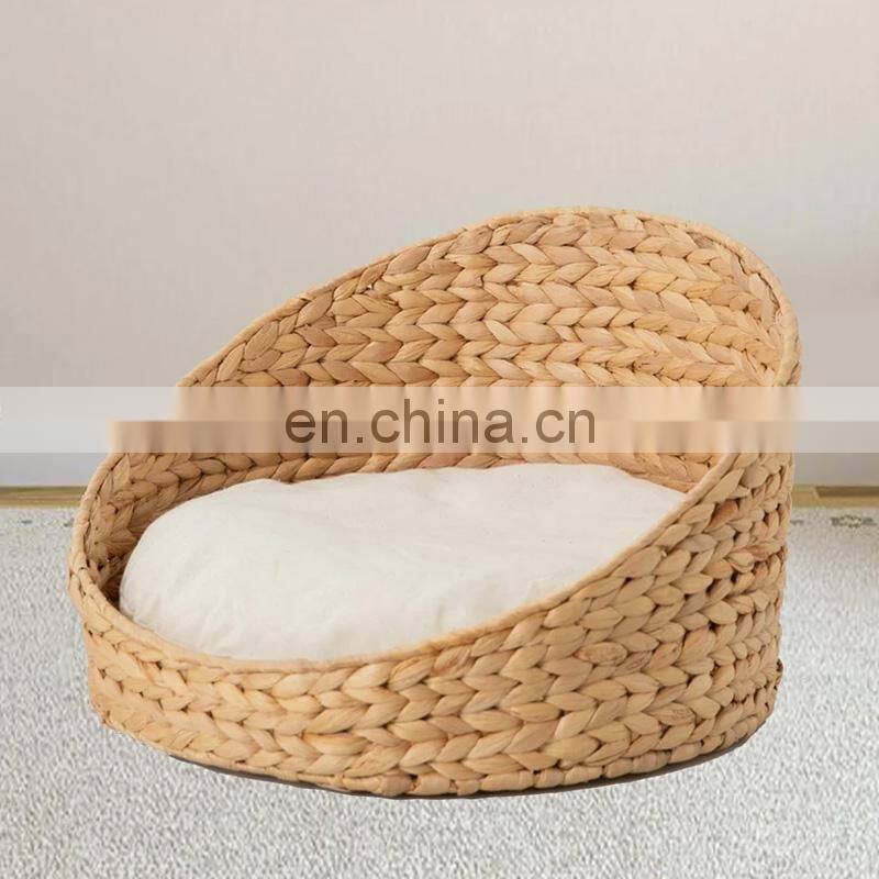 Hot Sale Simple Organic Oval Hyacinth Cat Nest With Handles and Cushion Pet Bed Pet Supplies Wholesale Made in Vietnam