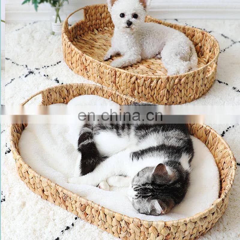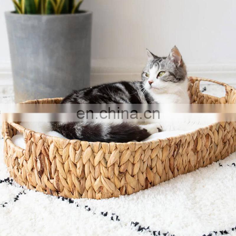 Hot Sale Simple Organic Oval Hyacinth Cat nest with handles and cushion pet bed pet supplies Wholesale made in Vietnam