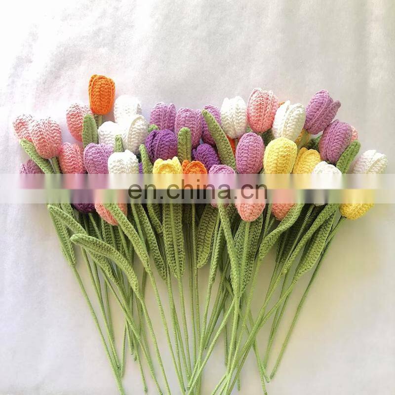 Hot Sale Finished Crochet Tulip, Handmade Knitted Flowers, Mother's Day Gift Supplier Cheap Wholesale