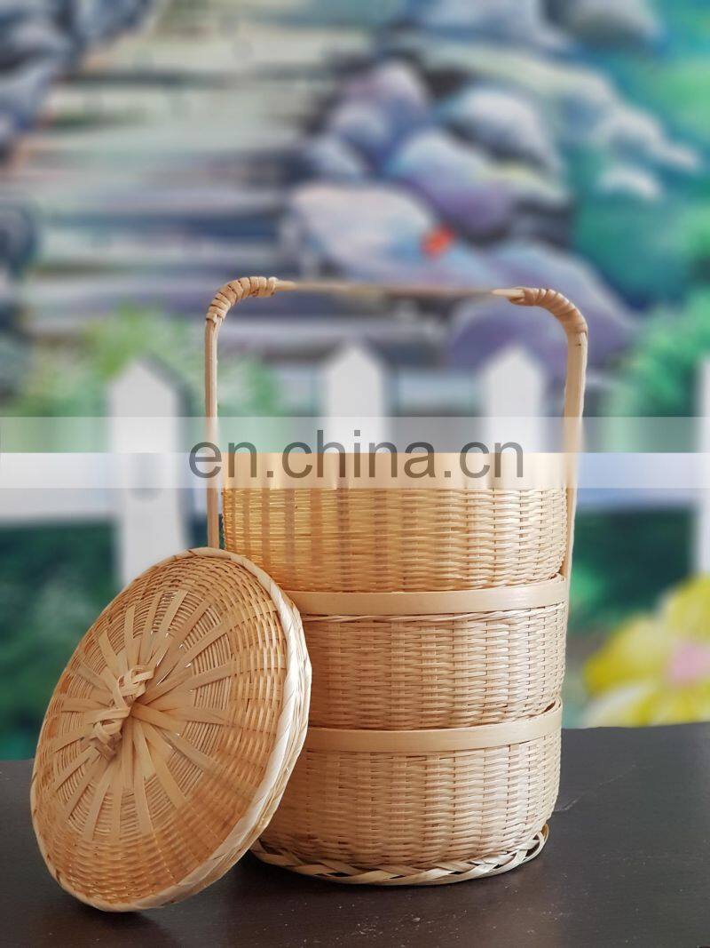 New Arrival 3 Tiers Bamboo Storage Basket With Handle Handmade natural gift basket & boxes Wholesale Made in Vietnam