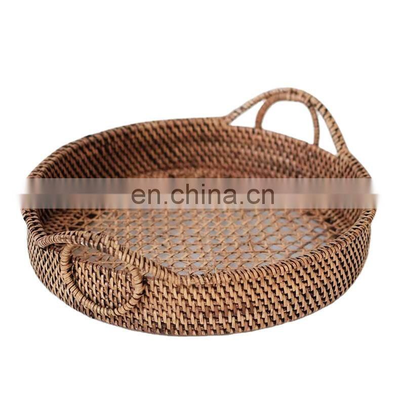 New Design Handwoven Big Round Bamboo Serving Tray Basket High Quality Coffee Tray For Fruit Basket Wholesale Multifunction