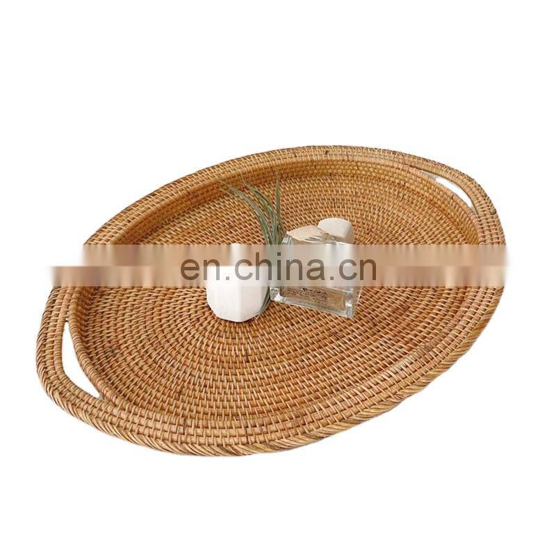 Home > Products > Home & Kitchen Accessories > New Design Handwoven Big Round Bamboo Serving Tray Basket High Quality Coffee Tray For Fruit Basket Wholesale Multifunction