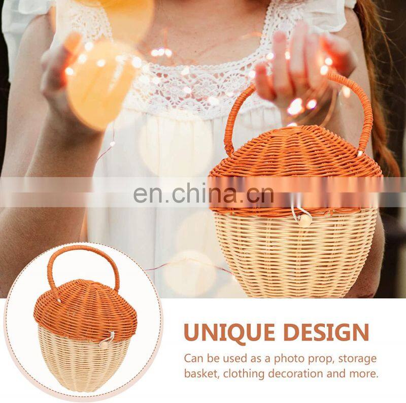 Hot Sale Rattan Woven Basket with Handle Acorn Shape Handbag Wall Hanging Basket Bag Kids Toys Wholesale Supplier