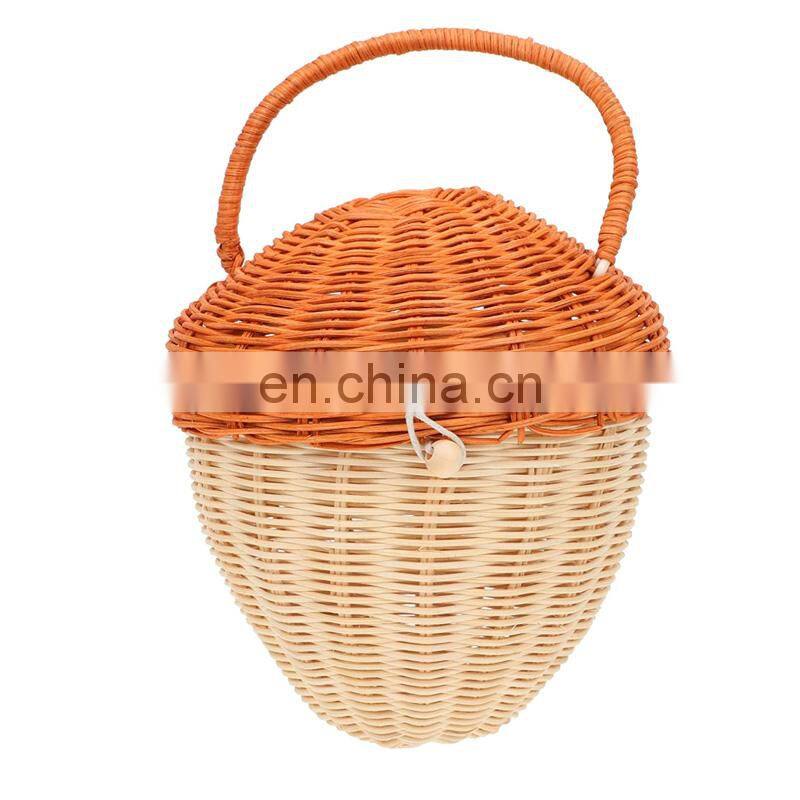 Hot Sale Rattan Woven Basket With Handle Acorn Shape Handbag Wall Hanging Basket Bag Kids Toys Wholesale Supplier
