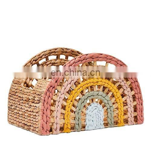 Hot Sale Water Hyacinth Kids Storage Painted Rainbow Basket Kid Toy Organization Woven Natural Basket Vietnam Cheap Wholesale